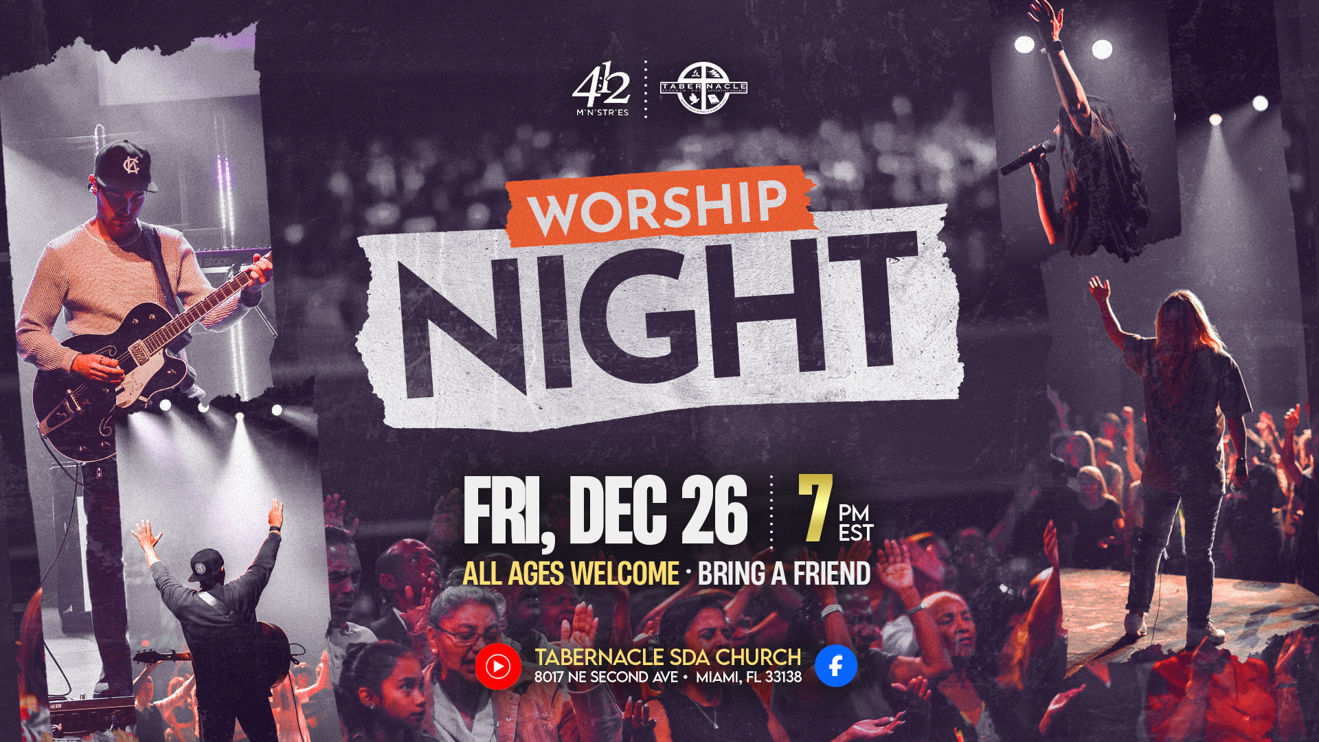 Campus Ministries invites you to a Worship Night at Tabernacle on Friday, December 26, at 7:00 PM. Under the theme, “Blessed and Highly Favored,” the evening will be filled with heartfelt praise, worship, prayer, and an encouraging word.